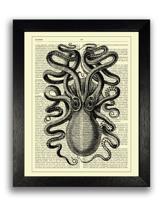 Giant Octopus Art Print Nautical Wall Decor Unique Bedroom Etsy