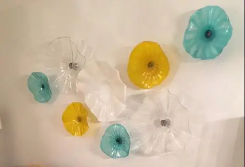 Modern Hand Blown Glass Art Bright Color Lotus Flower Plates Wall
