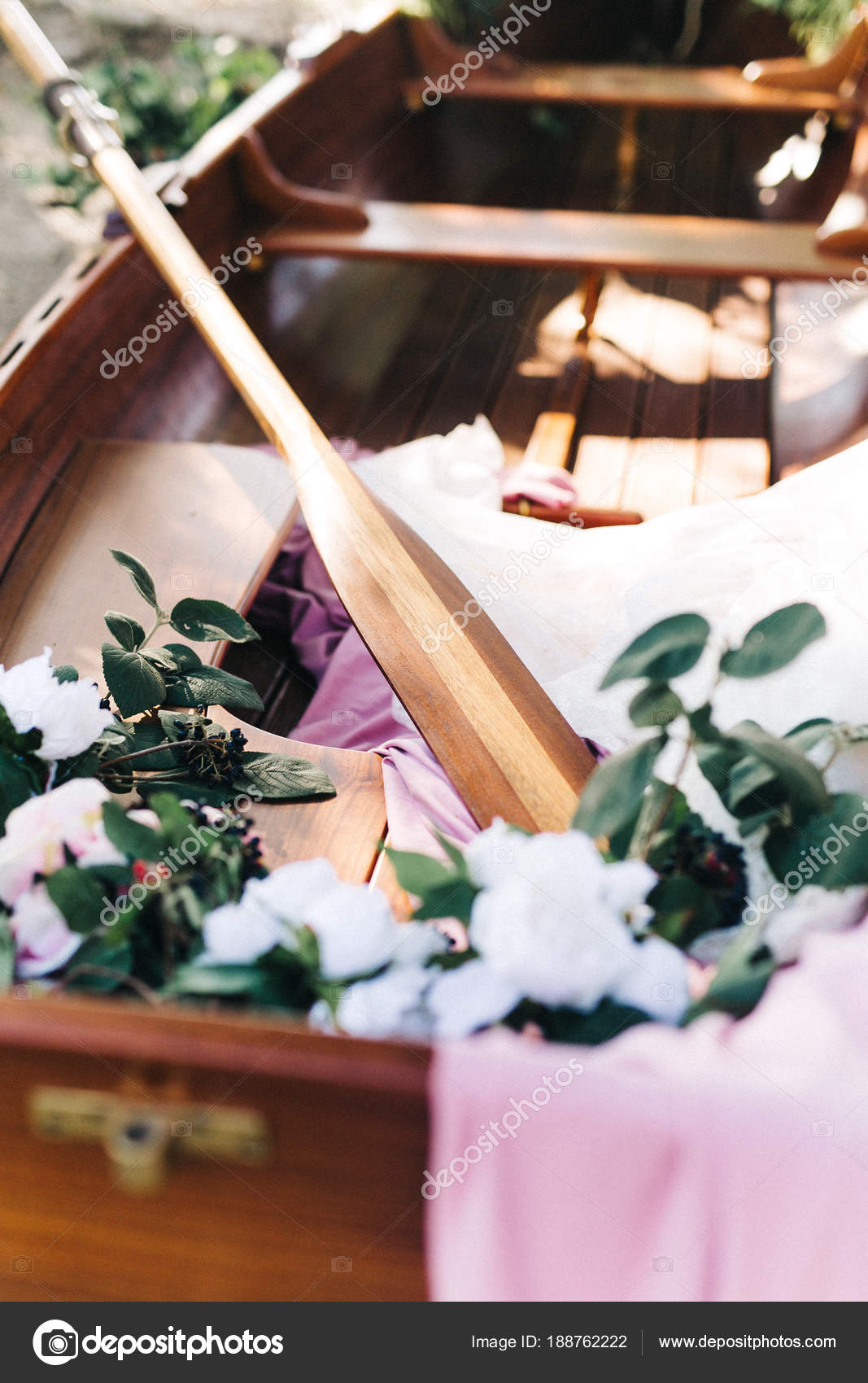 Beautiful Wedding Decoration Wooden Boat Stock Photo C Shunevich