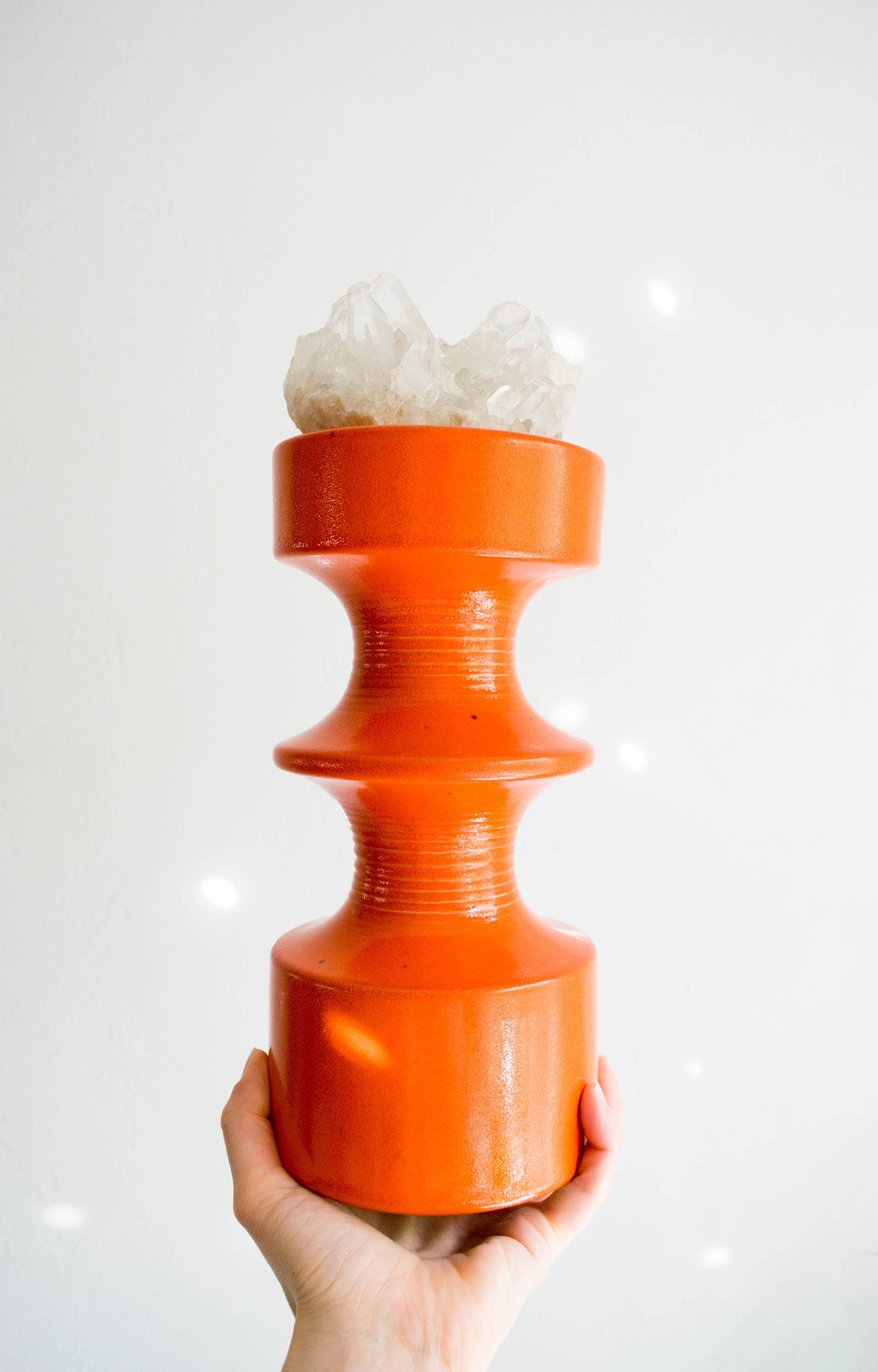 Vintage Orange Steuler Ceramic Fat Lava Candle Holder