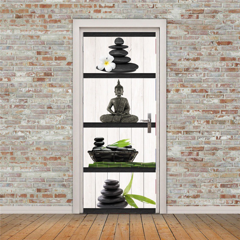 Hot 3d Door Sticker Buddha Waterproof Wallpaper Home Decor