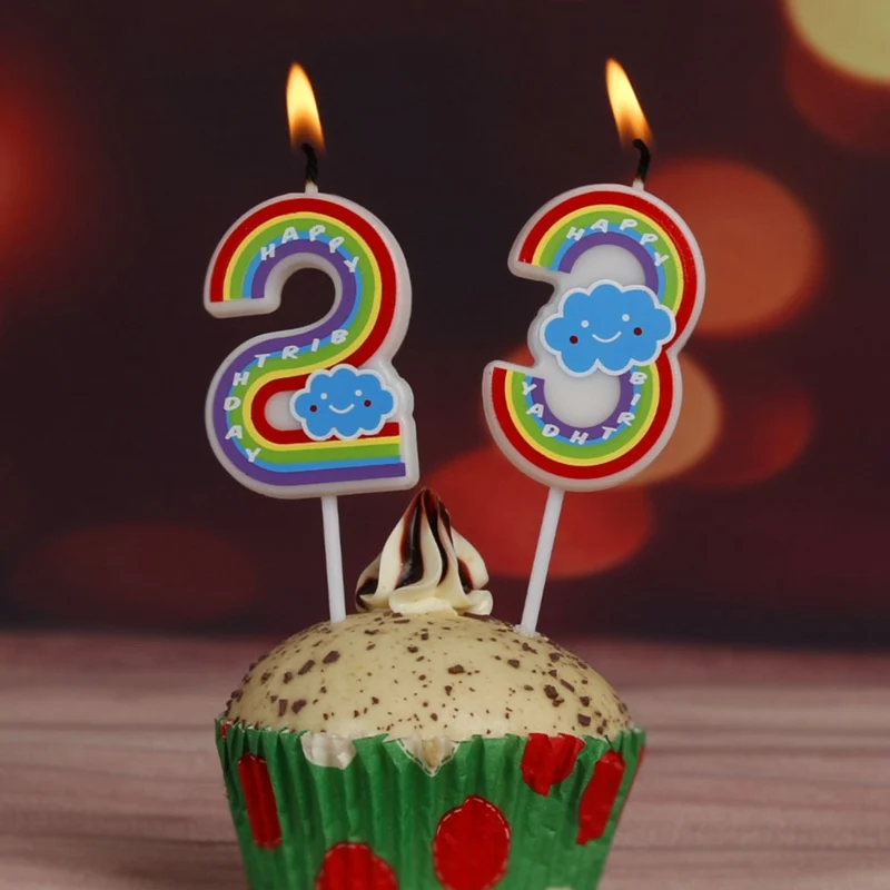 Happy Birthday Candle Cake Cupcake Topper Cartoon Rainbow Number