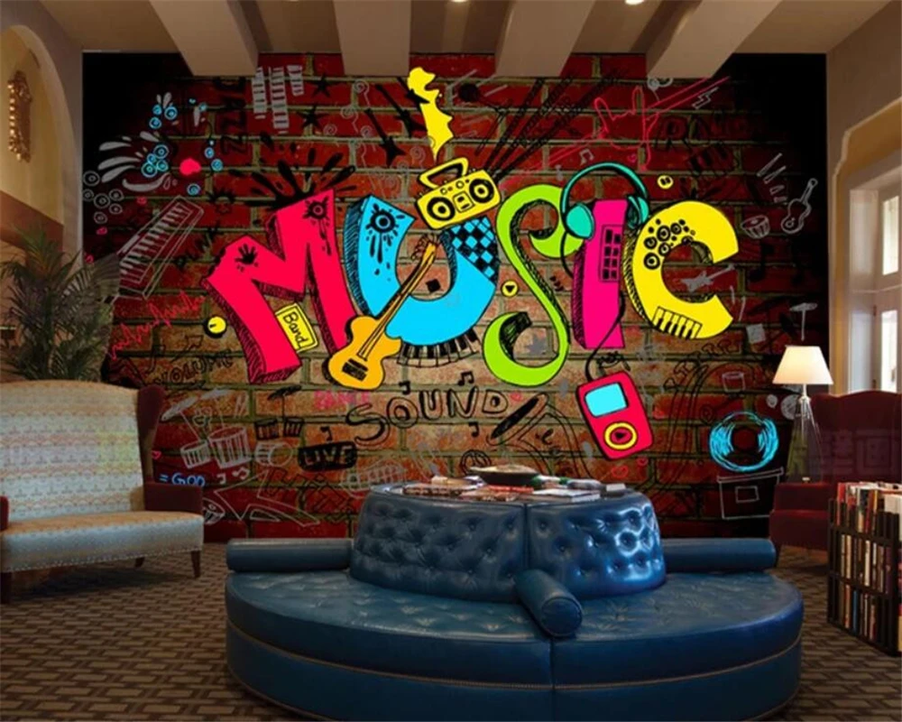 2 Beibehang Foto Papel Pintado Moda Musical Ladrillo Bar Cafe