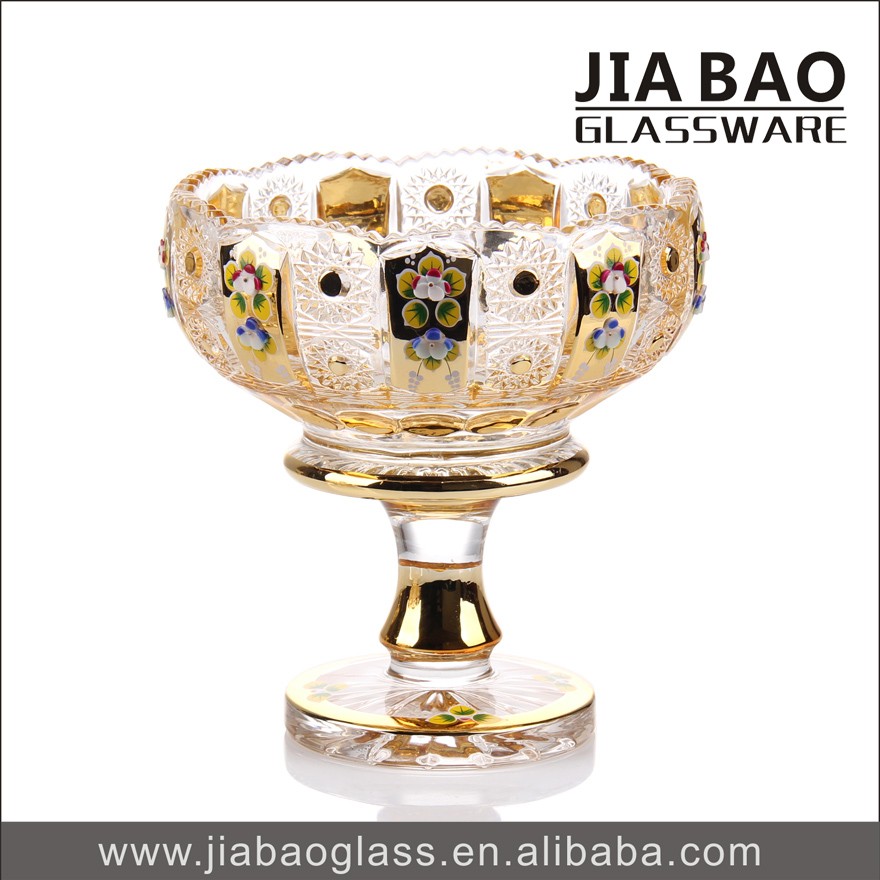 Arabic 5 Golden Electroplating Glass Fruit Bowl With Stem