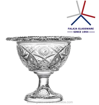 Falaja Large Clear Decorative Glass Fruit Salad Bowl With Stem
