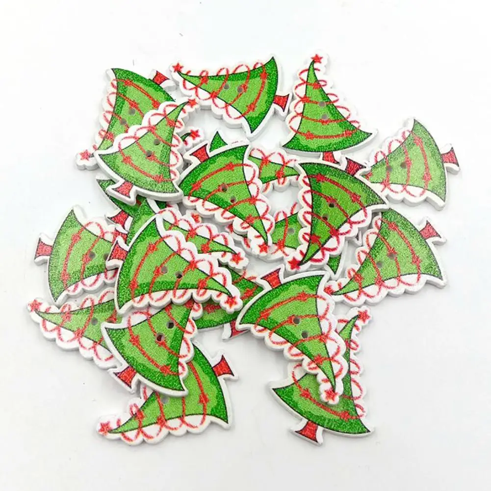 100pcs Lovely Christmas Tree Printed Wooden Button 2 Holes Cartoon