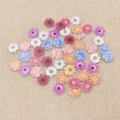 Cute Wooden Flower Painted Buttons Hand Craft Sewing Decor Garment