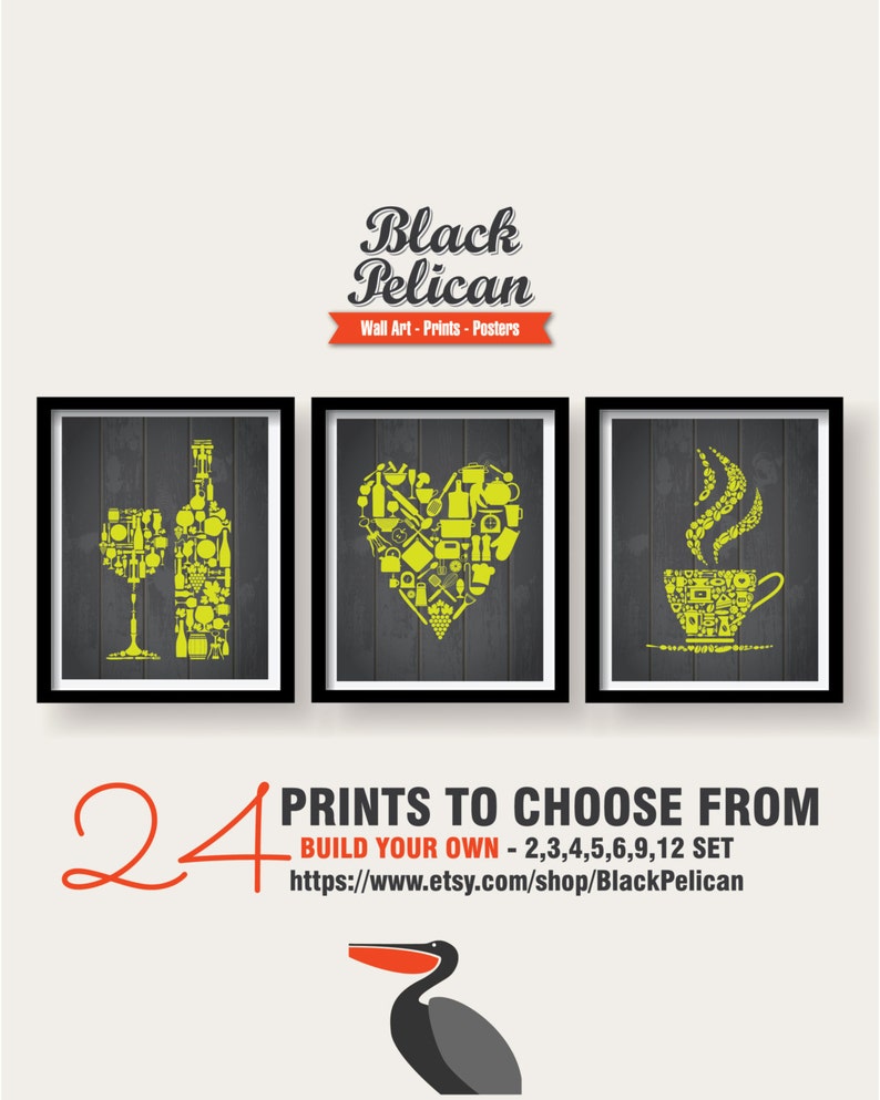 Green Yellow Dark Grey Kitchen Decor Teal Kitchen Icons Etsy