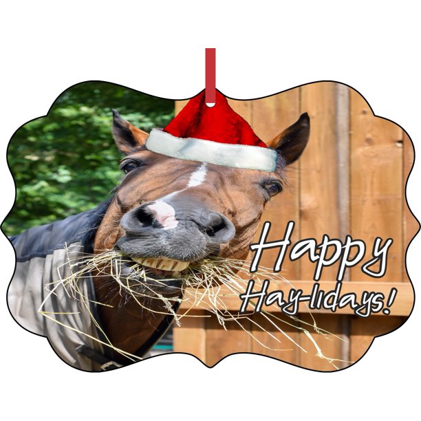 Horse Ornament Christmas Happy Hay Lidays Elegant Aluminum