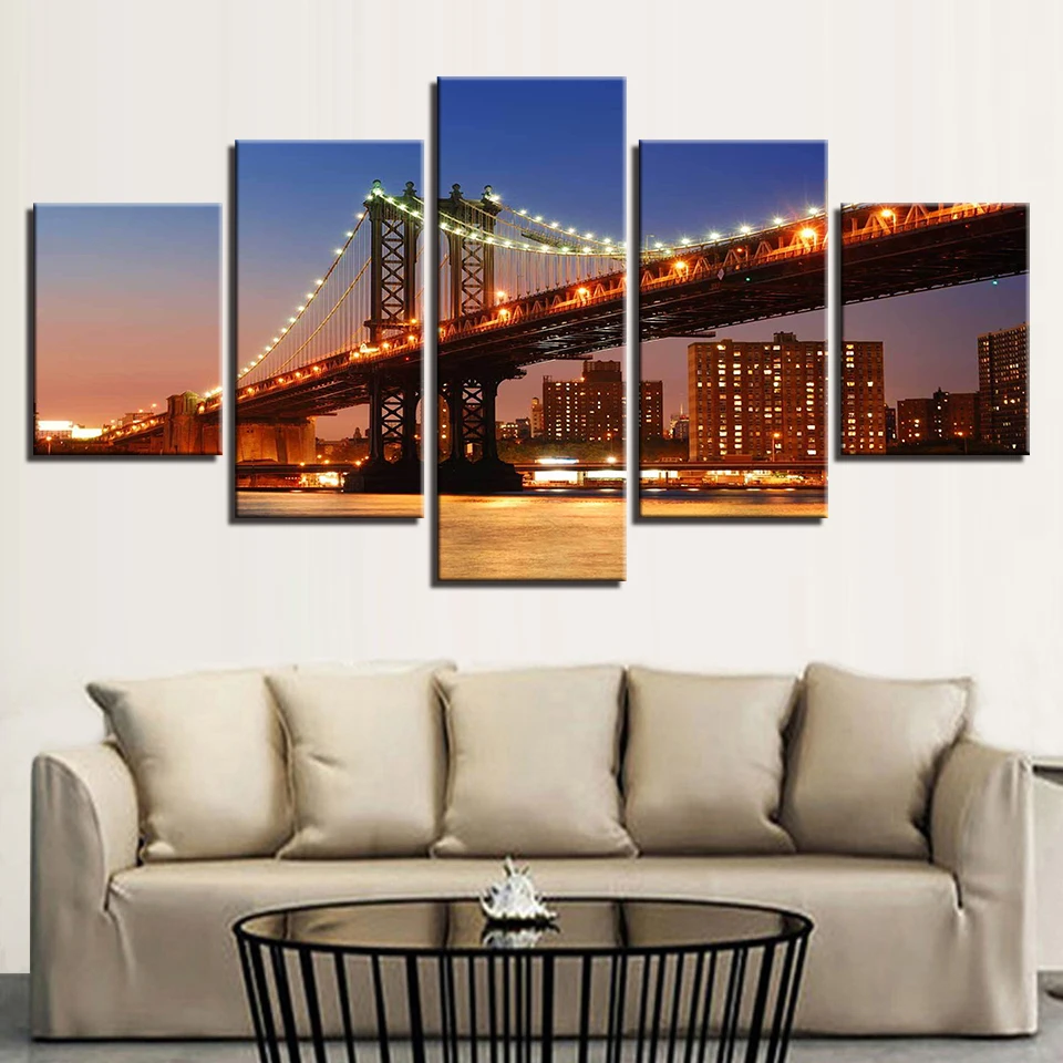 Modular Bridge Pictures Hd Print Canvas Frame 5 Panel New York