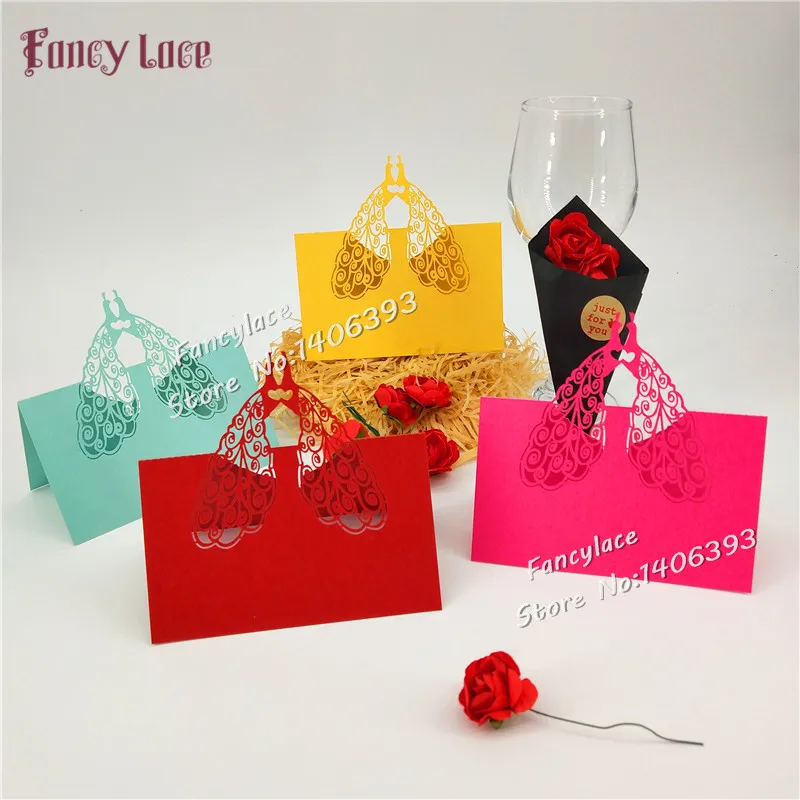 50pcs Laser Cut Peacock Wedding Invitations Table Name Place Cards