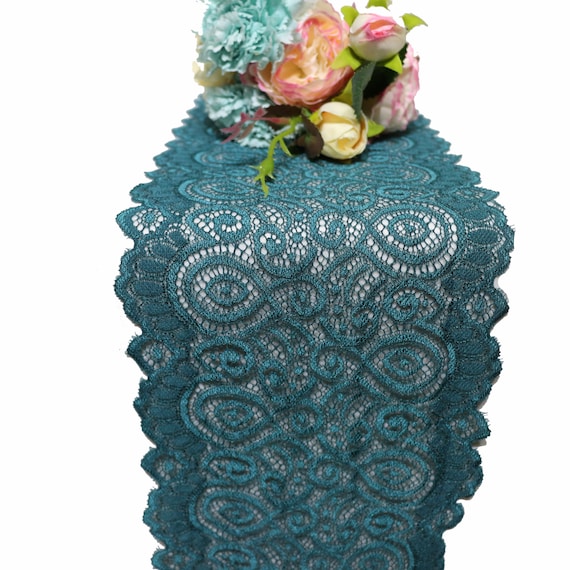 Teal Table Runner Green Lace Table Runner 7 Wide Etsy
