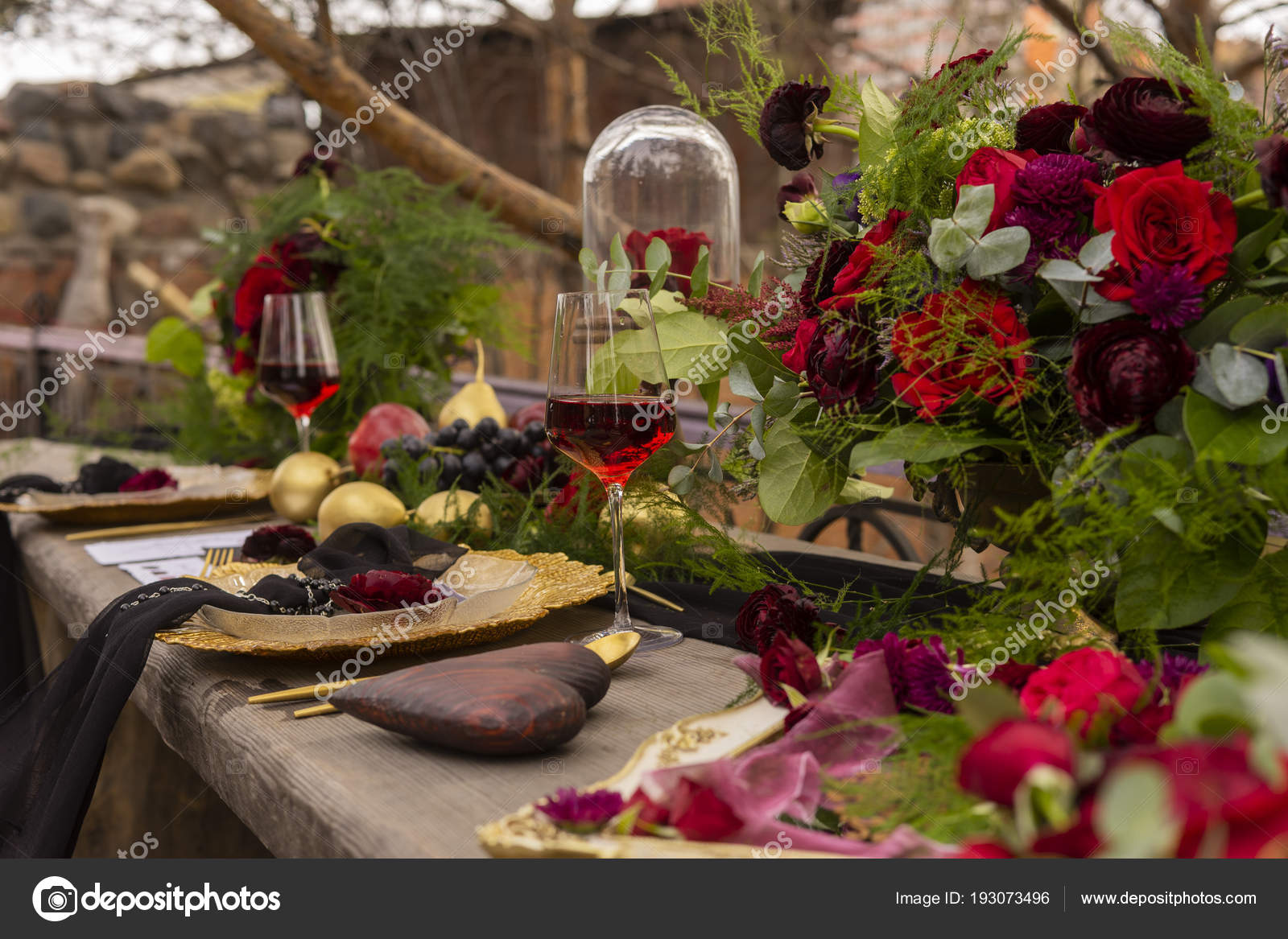 Elegant Black Red And Gold Halloween Table Setting Entertaining