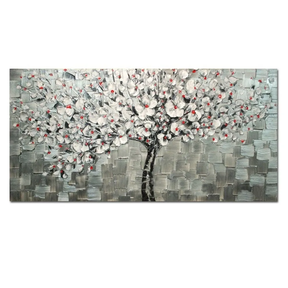 Hand Painted Abstract Canvas Oil Painting Silver Tree Wall Art