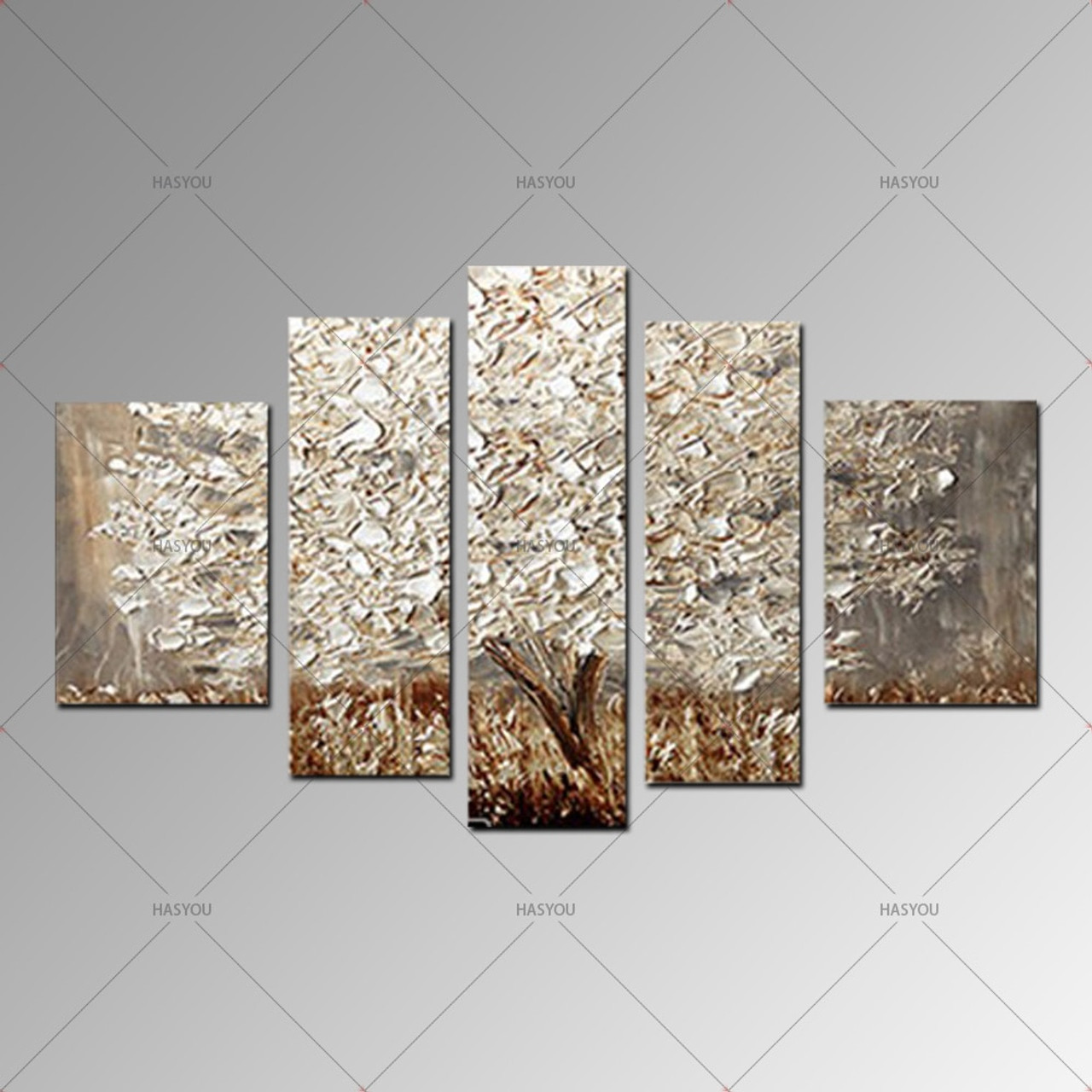 5 Panels Abstract Silver Tree Oil Painting 100 Hand Painted
