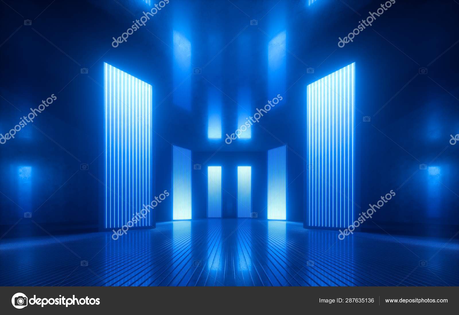 3d Render Blue Neon Abstract Background Ultraviolet Light Night