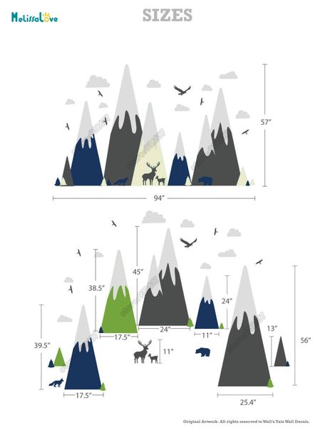 Big Baby Room Decal Adventure Theme Huge Mountain Cloud Bird Deer