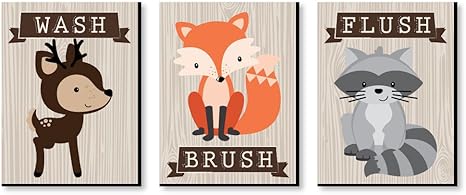 Woodland creatures kids bathroom rules wall art 75 x 10 inches set of 3 signs wash. Big dot of happiness woodland creatures kids room nursery decor and home decor 11 x 11 inches nursery wall art set of 4 prints for babys room. See more ideas about woodland creatures kids bath and woodland.