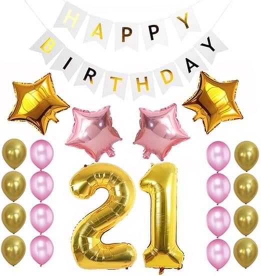 Happy 21st Birthday Banner Balloons Set For 21 Years Old Birthday