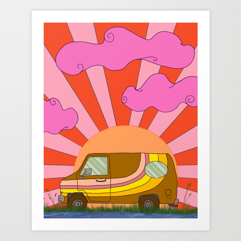 Van Life Hippie Art Print Hippie Van Wall Art Bohemian Boho