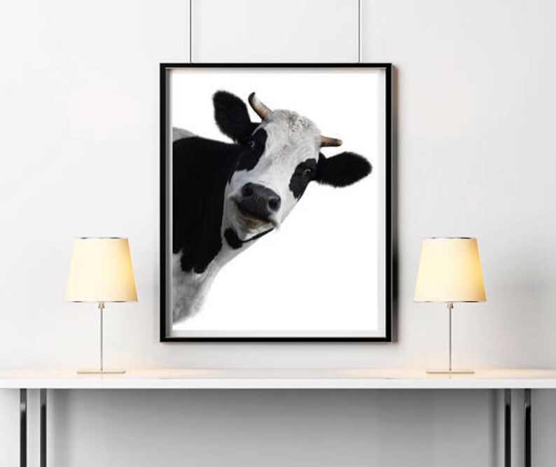 A black and white print of a cow can connect industrially designed homes with some aspects of softness without breaking from the style too much. 1 40 1 to 40 of 77 products. Cow kitchen decor cow decor kids decor barn door decor wood barn door barn doors wood wall art wall art decor white cow.