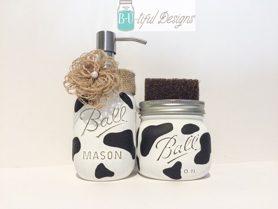 Cow Print Kitchen Decor Soap Dispenser Mason Jar And Sponge Etsy