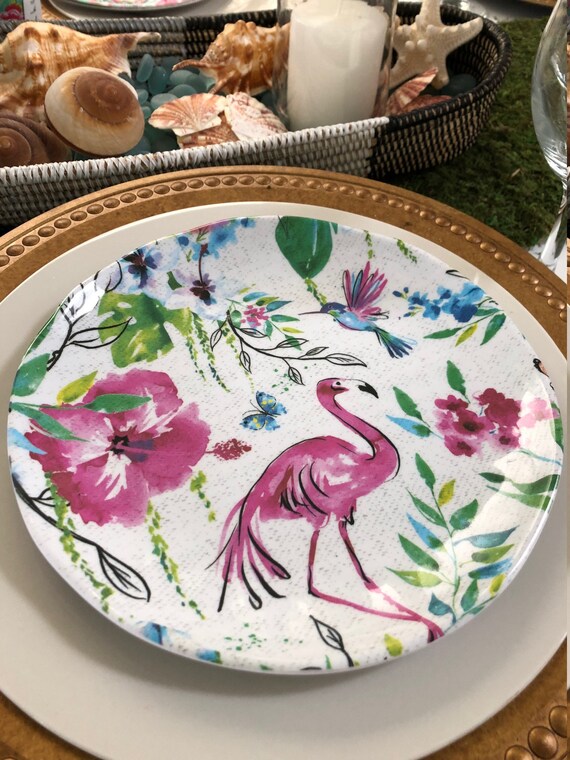 Cynthia Rowley Watercolor Flamingo Floral Salad Plates Set Of Etsy