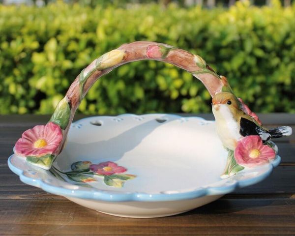 2020 Ceramic White Birds Basket Fruit Candy Storage Dish Dessert