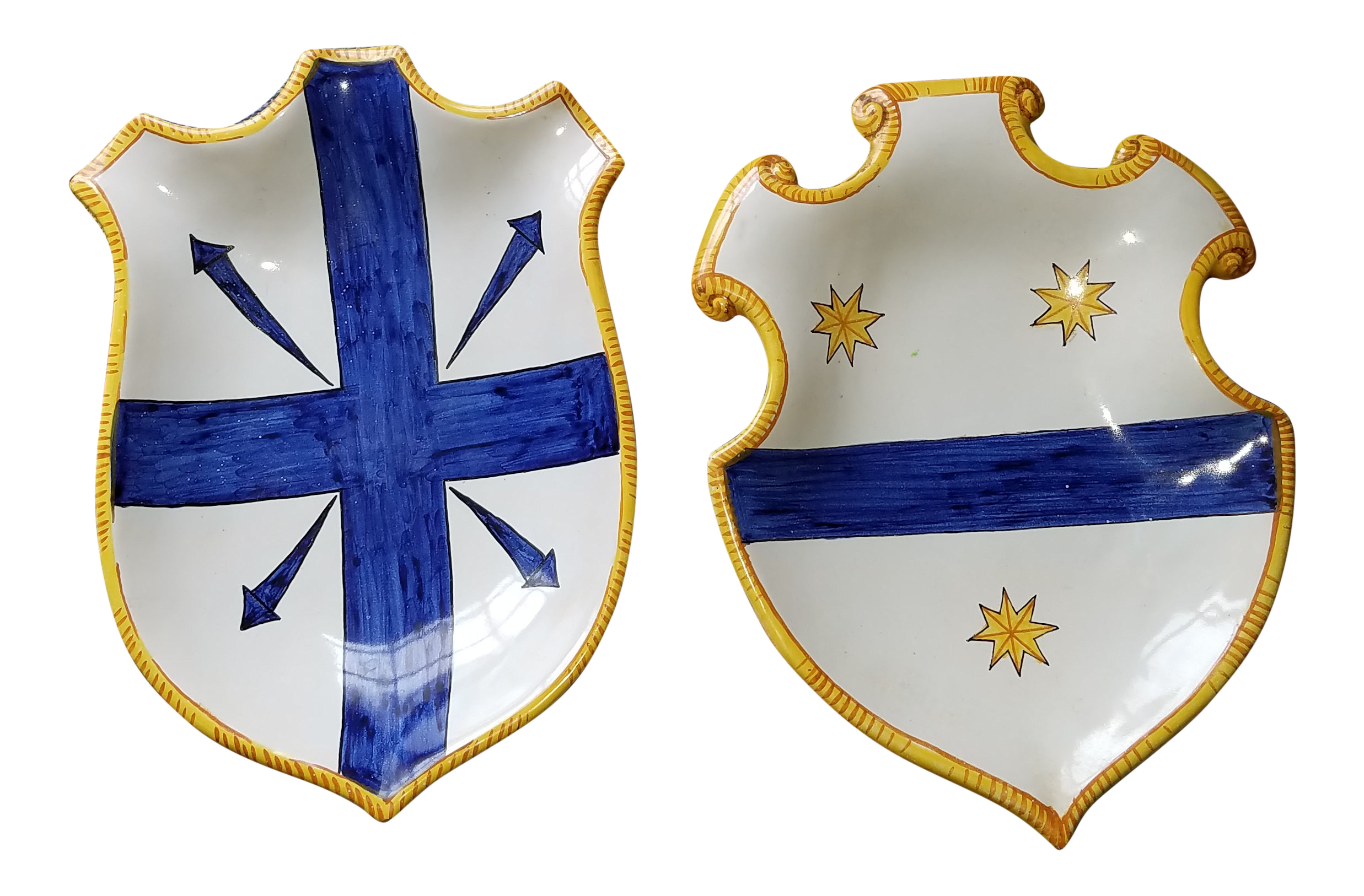 Cartouche Or Shield Form Italian Faience Wall Plates A Pair