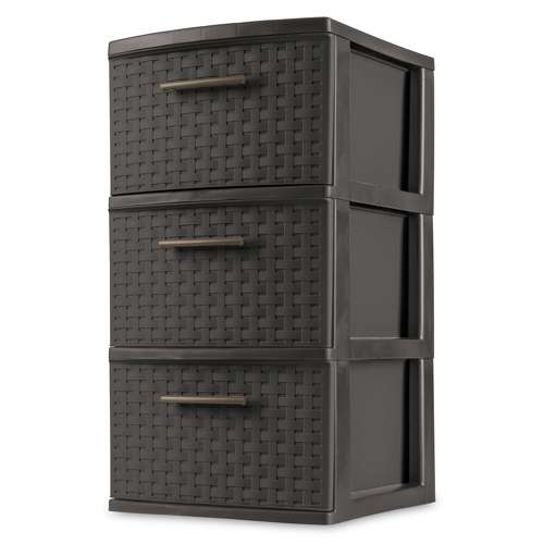 Sterilite 3 Drawer Wicker Weave Decorative Storage Tower Espresso