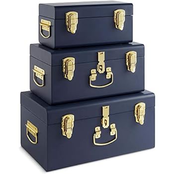 Beautify Set Of 3 Navy Storage Trunks For Bedroom Living Room