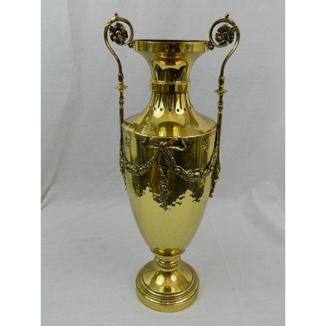 19th Century Pair Of Polished Brass Decorative Urns Or Vases With