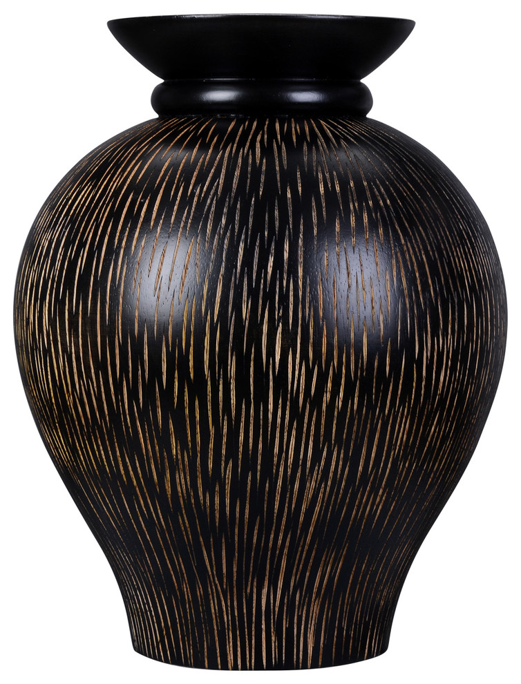 Villacera Handmade 10 Mango Wood Decorative Urn Vase Zebra