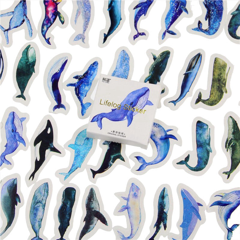 45 Pcs Pack Animal Blue Whale Fish Mini Paper Sticker Diary