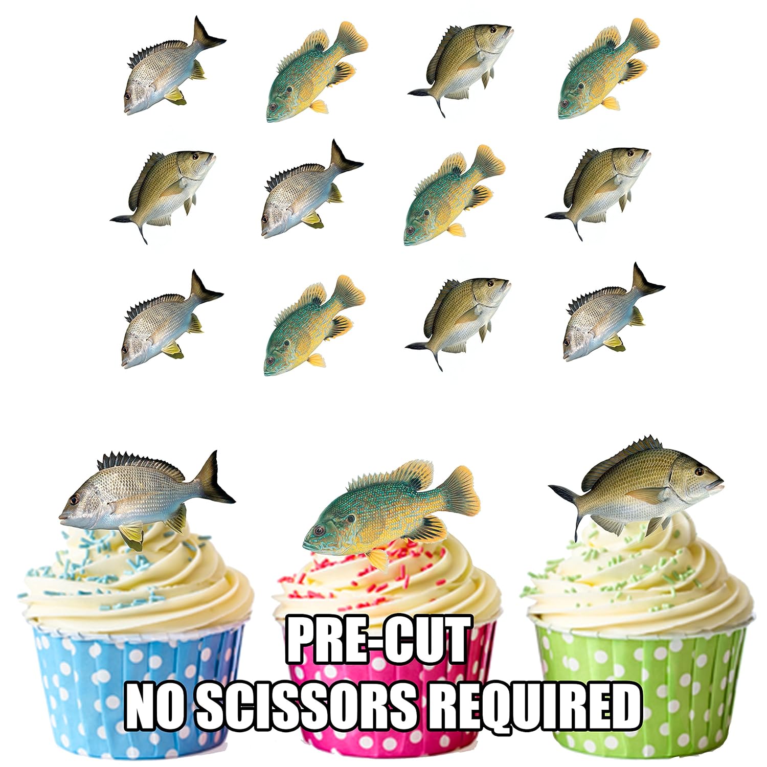 Pre Cut Fishing Bream Edible Cupcake Toppers Cake Decorations