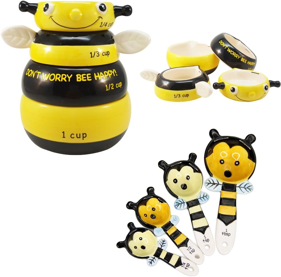Amazon Com Happy Bee Ceramic Measuring Cup And Spoon Set Kitchen