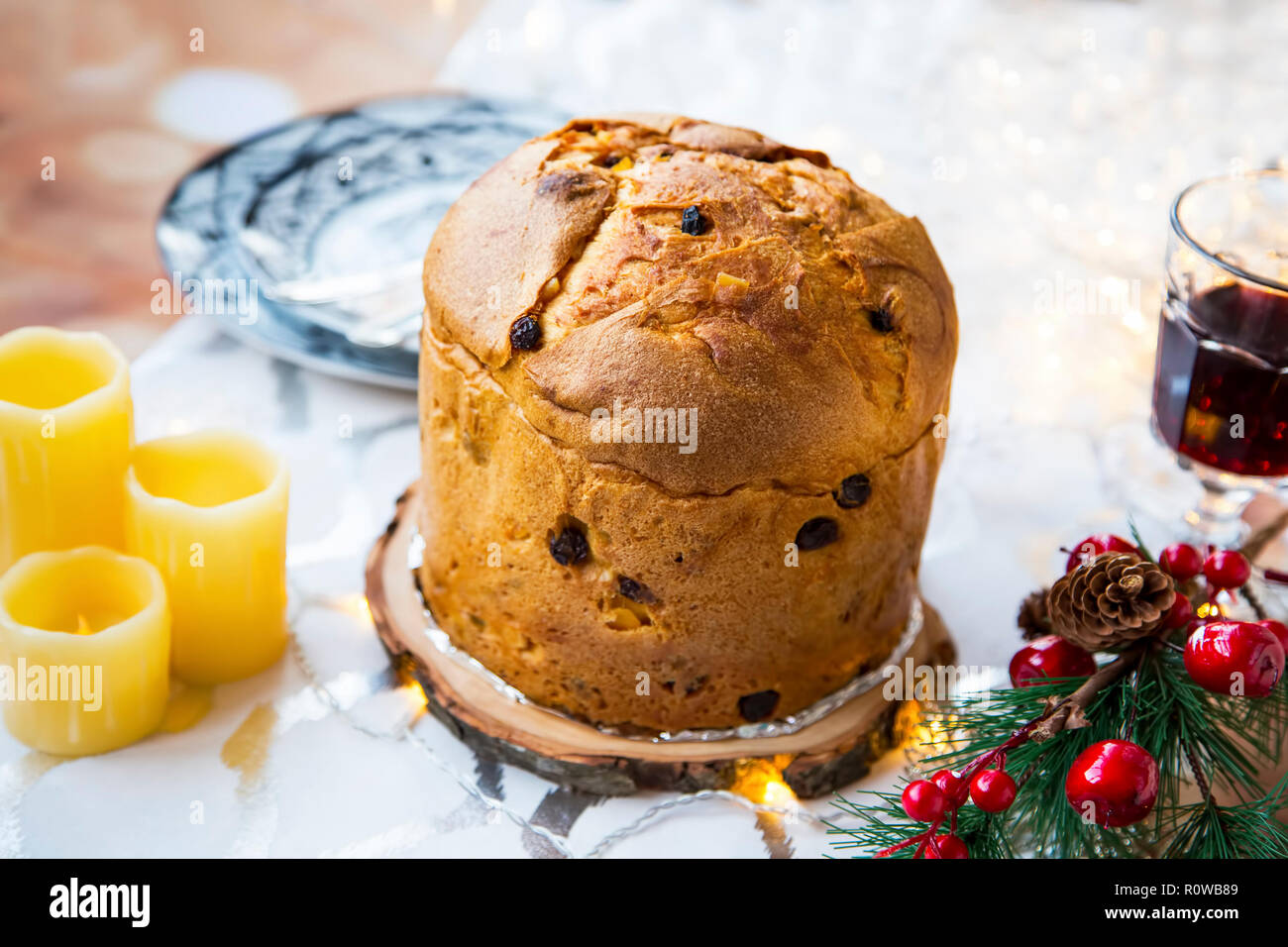 Panettone Italian Sweet Bread On Festive Christmas Table Setting