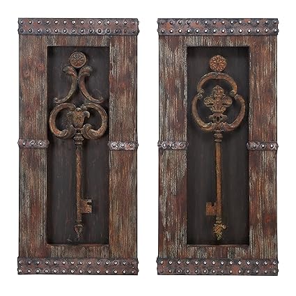 Aspire 68402 Antique Key Wood Wall Decor Set Of 2 Amazon Co Uk
