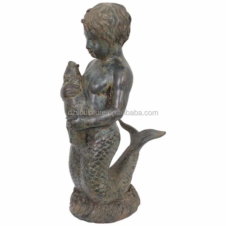 Used Home Decor Cute Little Mermaid Boy Statue With Fish Buy