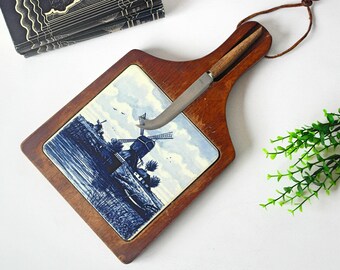 Vintage Mid Century Wooden Cheese Board Ceramic Tile Inlay Etsy