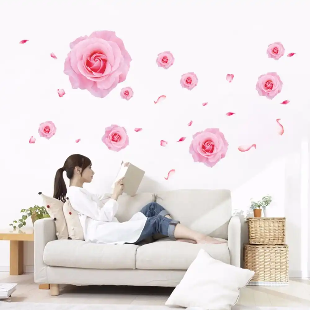 Fashion Home Decor Plane Wall Sticker Pink Rose Romantic Flower