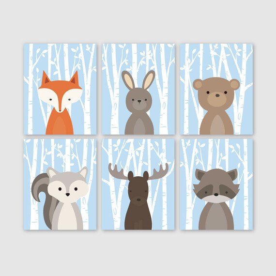Blue Woodland Nursery Wall Art Boy Nursery Wall Decor Forest Etsy