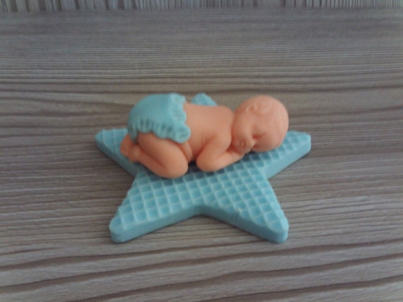 Edible Sleeping Baby Boy On A Star Fondant Cake Decoration Etsy