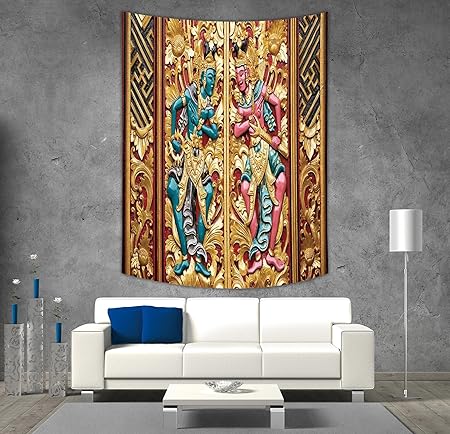 Iprint Polyester Tapestry Wall Hanging Balinese Decor Temple Door
