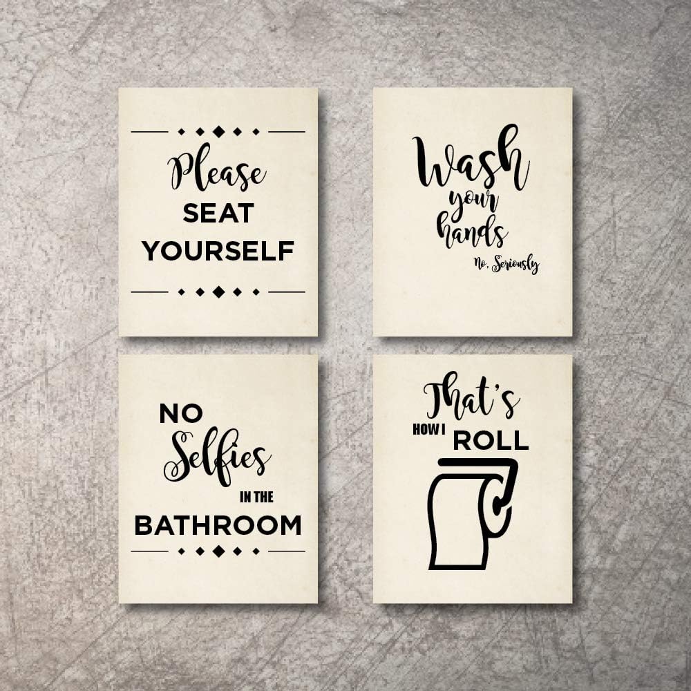 Amazon Com Bathroom Decor Wall Art 4 Prints No Selfies In