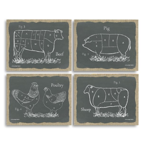 Chalkboard And Burlap Style Kitchen Art Sectioned Farm Animals