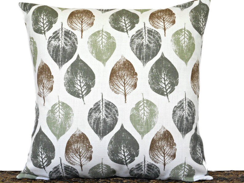 Modern Leaves Pillow Cover Cushion Fall Green Brown Beige Etsy