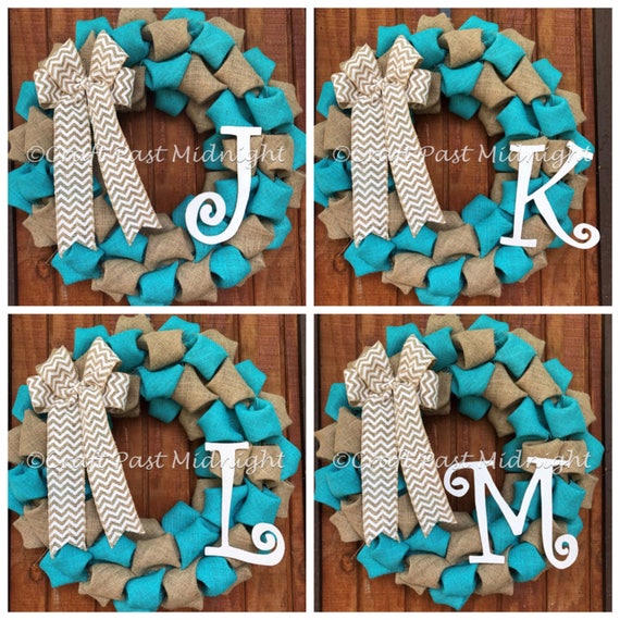Turquoise Burlap Wreath Decor Burlap Wreath Front Door Etsy