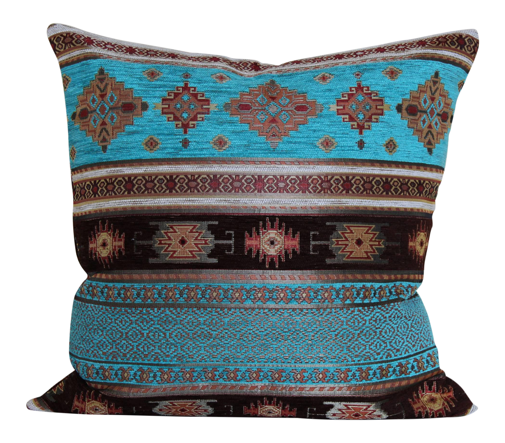 Turkish Kilim Patterned Turquoise And Blue Decorative Throw Pillow