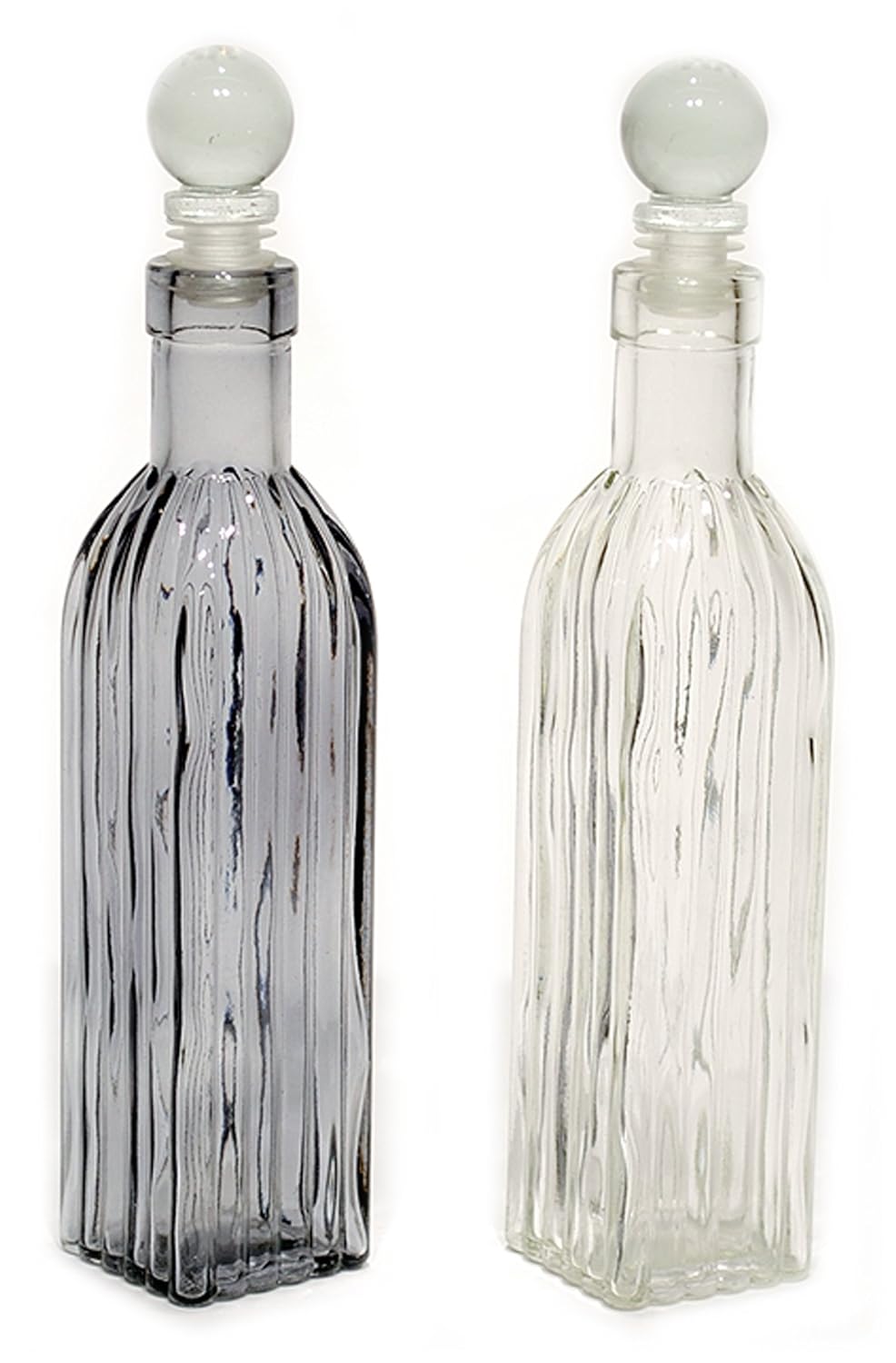 9 5 Clear Gray Decorative Glass Bottles With Stoppers Set Of